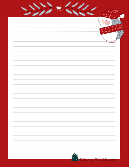 This is a cute letter pad stationery design that has a border of Christmas trees. There are adorable red cars made at the top of this Christmas stationery paper. You can play your Christmas games using this stationery or you can use it to write a letter to your loved ones.
